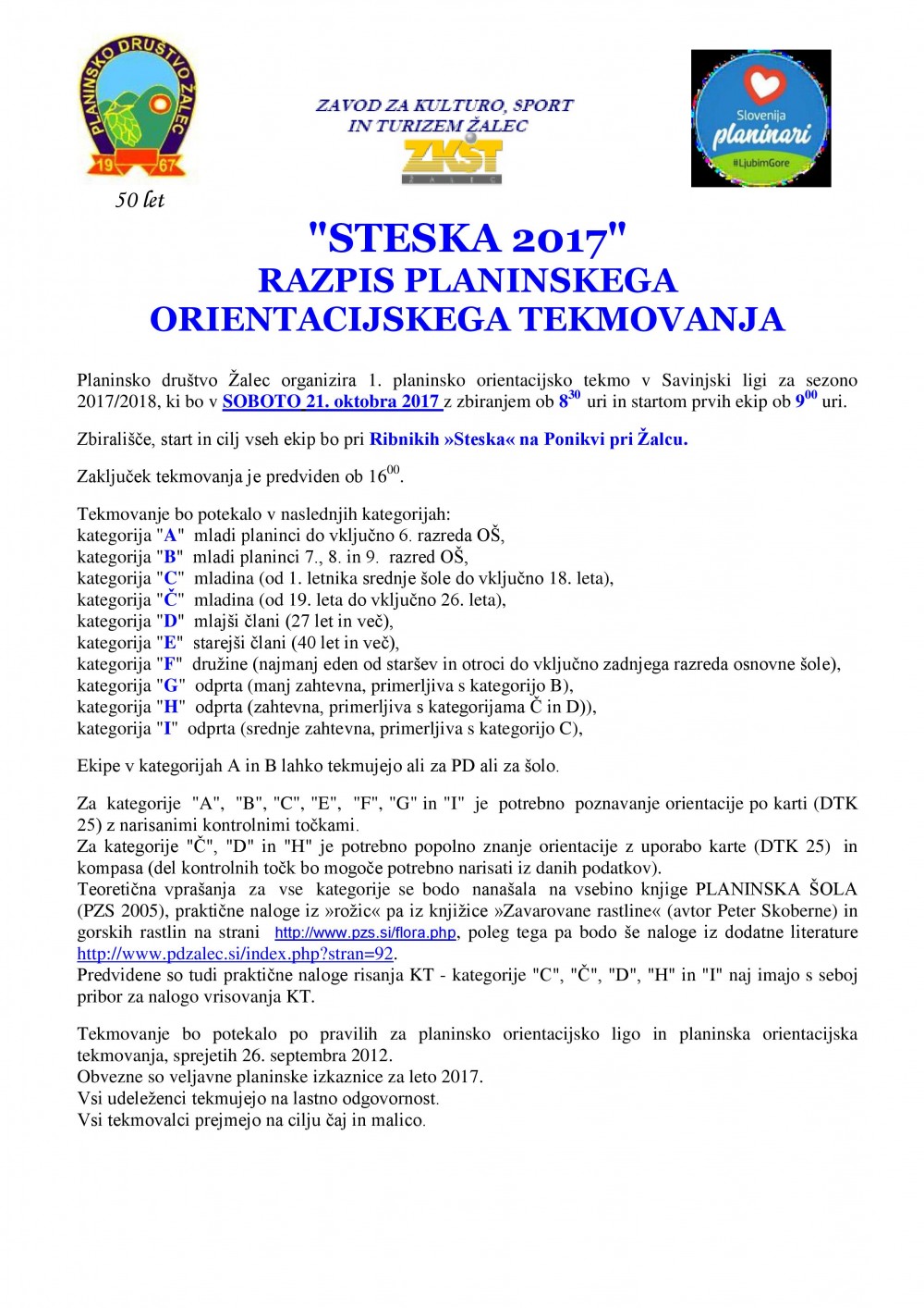 21.10.2017 / Tekmovanje, ogledov: 3703Planinsko orientacijsko tekmovanje Steska 2017Ostali dogodki in aktivnosti ta dan:
