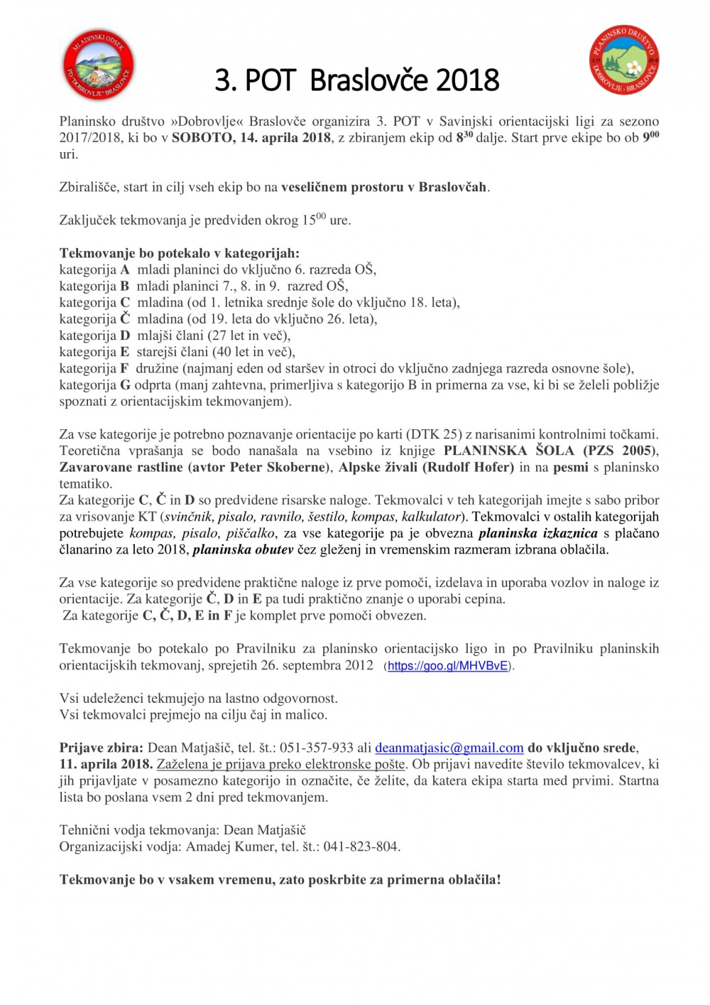 14.04.2018 / Tekmovanje, ogledov: 4171POT BraslovčeOstali dogodki in aktivnosti ta dan: