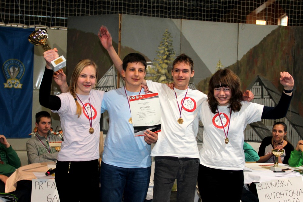 Slivnica pri Celju) in na tretje Pr'farski gamsi (OŠ Spodnja Idrija, PD Idrija). Na četrtem mestu so tekmovanje