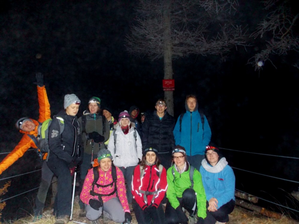 petek, 23. december 2016 ob 09:00, ogledov: 4952 Študentski večerni poskus na Javorov vrh | Objavil(a): Matej Ogorevc | | Približujejo se prazniki in obilica dobre hrane, počasi pa se zaključuje še eno prelepo leto. Da bomo s študentskimi izleti zaključili tako, kot smo v januarju začeli, se je skupinica 14 študentov odpravila kar ponoči osvajat 1434 metrov visok Javorov vrh. | Vse se je pričelo v Vižmarjah, kjer se nas je 9 nabasalo v kombi, ostalih 5 pa v avto. Po divji vožnji smo le prispeli v Potoče. Iz parkirišča smo pogumno zakorakali v temo, najprej po cesti nato pa po gozdni stezi. Kaj kmalu smo vsi prižgali čelne svetilke in po razgibani poti se je vila kača kresničk.