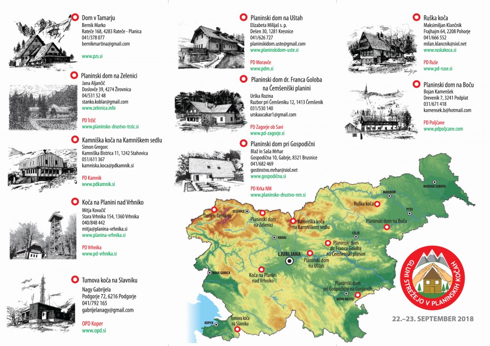 Vabimo vas, da nas obiščete na enih izmed 10 koč in se udeležite akcije, ki je namenjena nam vsem. Veseli bomo vašega obiska, vaših domačih, prijateljev, sodelavcev ...