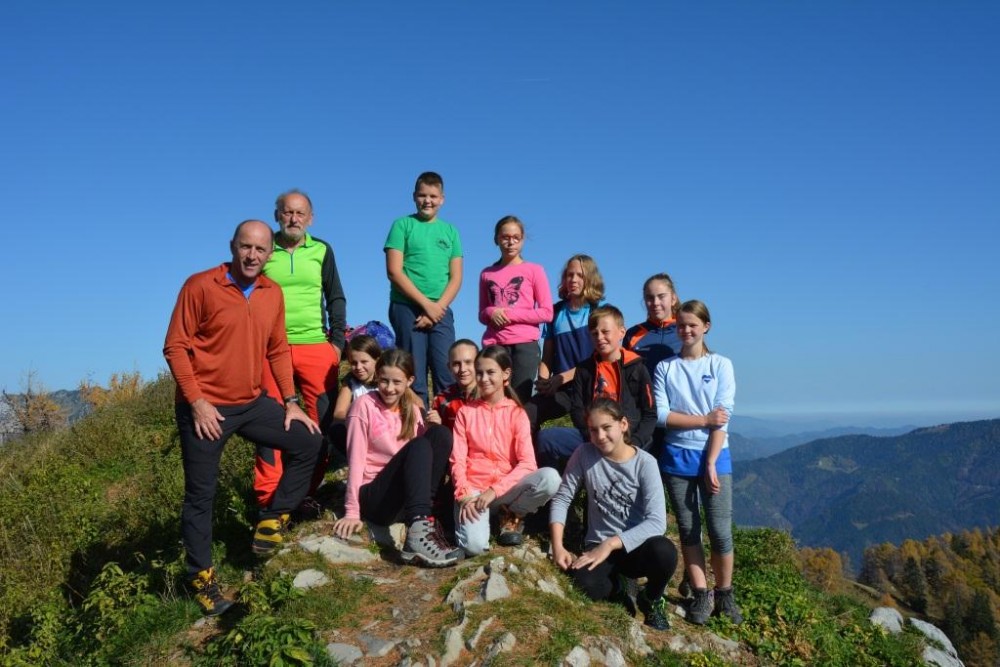 ponedeljek, 4. november 2019 ob 00:00, ogledov: 3572 MO Stonoga PD Nazarje na Strelovcu (1763 m)| Planinsko društvo Nazarje | | | | Objavil(a): Matej Ogorevc | | Oktober je za v gore dober in planinski krožek razredne stopnje OŠ Nazarje, za katerega skrbi Planinsko društvo Nazarje, to dobro ve. V soboto, 25.oktobra 2019, se je enajst mladih planincev, članov mladinskega odseka Stonoga, povzpelo na Strelovec. Varno sta jih vodila vodnika PZS Miran in Primož. | V sončnem in toplem dnevu brez enega samega oblačka so uživali v prekrasni jesenski naravi s čudovitimi razgledi na najvišje vrhove Kamniško-Savinjskih Alp. Med udeleženci je bilo veliko dobre volje, vsi so brez večjih težav zmogli dobrih šest ur hoje, kot je bilo treba za osvojitev 1763 metrov visokega vrha med Logarsko dolino in Robanovim kotom ter za sestop v dolino.