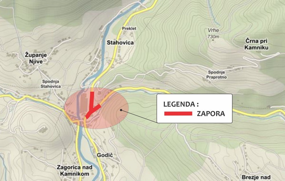 ZAPRTO križišče cest proti Kamniški Bistrici, Gornjemu Gradu in Kamniku (pri podjetju Calcit v Stahovici) - od sobote, 5. septembra, od 19. ure do nedelje, 6. septembra, do 5. ure zjutraj!