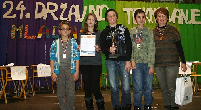Irena Kumer kot mentorica zmagovalne ekipe na 24. državnem tekmovanju Mladina in gore leta 2013 (foto Marija Završnik)
