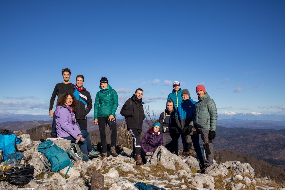 | Čeprav so nekateri dnevi že kar mrzli, nas je že zjutraj pričakal lep, sončen dan. Parkirali smo in se od parkirišča pri Razdrtem odpravili po zahtevni poti proti Vojkovi koči na Nanosu. Po dobri uri hoje in klepeta smo iz skalnega zavetja prišli na greben, kjer nas je pozdravil šibak veter ter mestoma tudi kakšen centimeter snega.