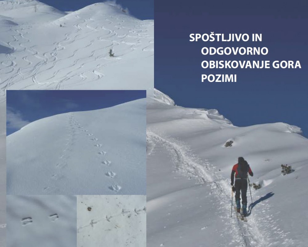 sreda, 6. december 2023 ob 11:30, ogledov: 2908 Spoštljivo in odgovorno obiskovanje gora pozimi | zgibankaObjavil(a): Manca Ogrin | | Planinska zveza Slovenije je v okviru projekta Vrh Julijcev pripravila novo zgibanko Spoštljivo in odgovorno obiskovanje gora pozimi, s katero pojasnjujemo razloge, ki so pomembni za varstvo vrst v gorah in hkrati nagovarjamo obiskovalce gora, kako se vesti v gorah pozimi. Držimo se označenih in ustaljenih poti ali prog. Izogibamo se predelom, ki jih živali uporabljajo za počivanje in prehranjevanje. Pomembno je, da ne povzročamo nepotrebnega hrupa, če nas spremlja pes, pa naj bo vedno na povodcu. |