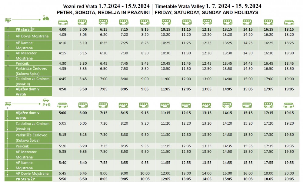 - Uvedba brezplačnega avtobusnega prevoza Mojstrana-Vrata s 15. 6. 2024 po sledečem voznem redu