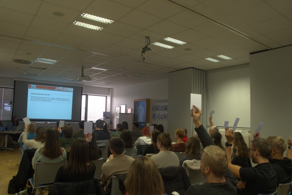 Opoldne smo začeli z Zborom. Najprej nas je nagovorila načelnica Mladinske komisije, Ana Skledar. Po potrditvi delovnega predsedstva in poročila verifikacijske komisije smo pričeli s samim Zborom. Ta je potekal po predlaganem in potrjenem dnevnem redu: 1. Izvolitev organov Zbora mladinskih odsekov in izglasovanje dnevnega reda 2. Poročilo verifikacijske komisije 3. Vsebinsko poročilo programa dela strokovnih odborov MK PZS za leto 2023 4. Vsebinsko in delno finančno poročilo za leto 2024, program dela MK PZS za leto 2025 ter okvirni program dela za leto 2026 5. Poročilo stališč in sklepov z okrogle mize 6. Podelitev priznanj mladinskim voditeljem 7. Podelitev priznanj Mladina in gore 8. Razrešnica organom Mladinske komisije PZS 9. Volitve organov Mladinske komisije PZS 10. Razno