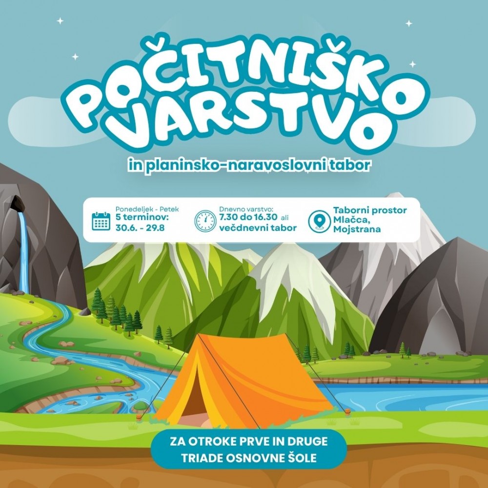 sobota, 7. junij 2025 ob 00:00, ogledov: 5502 Počitniško varstvo in planinsko-naravoslovni tabor za otroke – prijave odprte!| Objavil(a): Neža Kočevar | | Mladinska komisija Planinske zveze Slovenije letos prvič organizira počitniško varstvo in planinsko-naravoslovni tabor za otroke! Program bo potekal na taborniškem prostoru Mlačca pri Mojstrani in je namenjen otrokom prve in druge triade osnovne šole. Aktivnosti bodo potekale v petih terminih med 30. junijem in 29. avgustom 2025, vsak dan med 7.30 in 16.30, z možnostjo večdnevnega bivanja v taboru v šotorih. | Otroci bodo vključeni v pester in doživetij poln program v naravi: