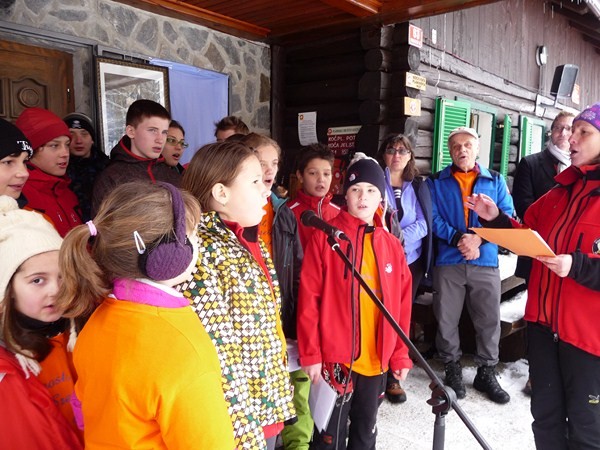 Ob prihodu h koči nas je pričakala cela gruča pohodnikov, ki so se odločili počastiti kulturni praznik na malce drugačen način. Glavna nit našega pohoda je bila organizacija in udejanjenje proslave ob kulturnem prazniku, ki so jo pripravili mladi planinci. Še malce generalke, pa se je začelo. Najprej nam je mlada pevka Ana uvodoma zapela himno, kot se za proslavo spodobi, nato pa nas je Vanja odpeljala po poti življenja Franceta Prešerna. Vzdušje pred kočo je postalo zares praznično. Malo harmonike, saksofona, malo recitacij in spomin na največjega literata nas je privedel do konca kulturne prireditve. Franci Janež, predsednik PD Kočevje, se je nastopajočim zahvalil za pripravo in izvedbo proslave ter zaslužnim planincem in tistim z največjim številom obiskov koče iskreno čestital. Nagovoril nas je tudi župan dr. Vladimir Prebilič. Presenetil nas je z recitacijo iz Glose. Veseli smo bili, da sta se proslave udeležili tudi ravnateljici OŠ Ob Rinži in OŠ Stara Cerkev.